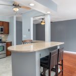 Great Location! Beautiful views of the trees from this Top Floor location. You will love the openness of the Floor plan. From the spacious Living Room with Wood Laminate Floors, TV mount Stays and 2 Sliding Glass Doors that leads to a spacious balcony with it’s own storage closet. And Dining Room with Built in Bar with Quartz top and Ceiling fan with light. You will be amazed by the remodeled Kitchen that opens to living Room with Breakfast Bar boasting 42″ Martha Stewart Living Soft close Cabinets, Quartz Countertops and the dazzling Glass/Stone backsplash, Pantry cabinet, Stainless Steel Microwave and Stove 2016, Disposal 2016.Ceramic Tile Floor. Recess lighting with 3 Way Switches. Spacious Bedroom. Freshly Painted Living Room, Kitchen, Dining Room and Bathroom. Furnace is a Carrier serviced in 2022 new control and Thermostat. Storage same floor located by elevators and you walk in it is the first one labeled 403A. Laundry is on the 3rd Floor. there is a remodeled Clubhouse with Fitness Room, Sauna, Bike room, Pool is 10 FT deep with Life Guard on duty. Party Room, & Jogging Trails. Convenient to 2 town centers! Commuter bus to train station stops at building. Maintenance Free Living at it’s BEST! Call NOW!